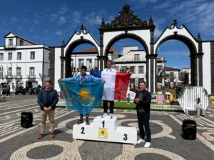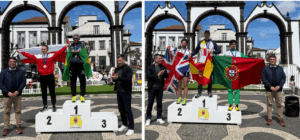 Luca Venturilli proudly singing Italy’s national anthem during medal ceremony at Brisbane 2025. Photo Credit: SIA